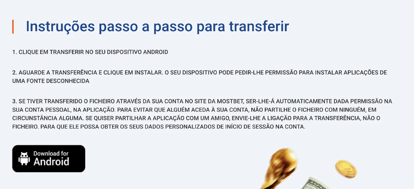 Como a app Mostbet (devido às políticas da Google Play Store relativas a jogos de azar) não está disponível na Google Play Store, terá de a descarregar diretamente do site da Mostbet, como um ficheiro APK. Siga estes passos: