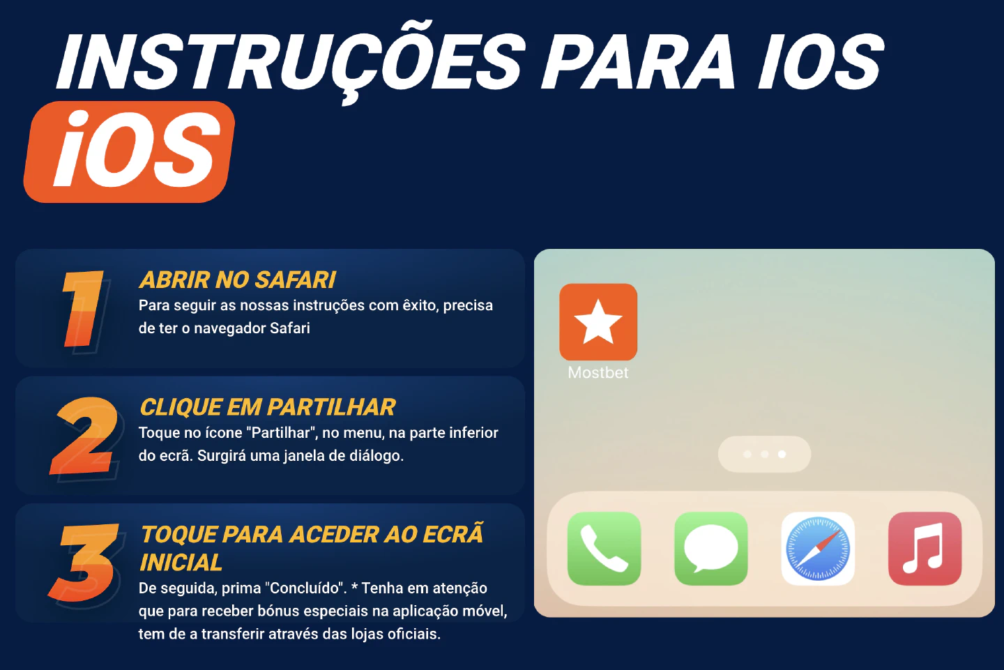 - Se a app não estiver disponível na App Store portuguesa: Aceda ao site oficial da Mostbet através do navegador do seu dispositivo iOS. Procure a secção de download para iOS e siga as instruções fornecidas (normalmente envolvem um link direto ou um perfil de configuração).