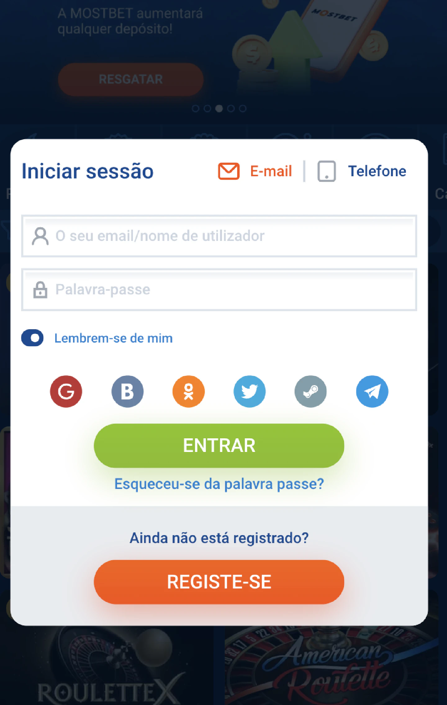 Se associou a sua conta MostBet a um perfil de rede social (Facebook, Google, Telegram ou outro serviço suportado), pode iniciar sessão com um único clique!